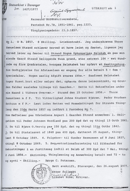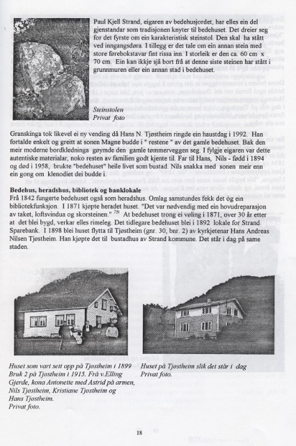 Kristoffer og medhjelperne hans arbeidet i flere år for å få gjenreist bedehuset på Strand. De ville bruke de gamle materialene som var i et hus på Tjøstheim. Kristoffer døde dessverre i 2007 og siden er prosjektet lagt på is.