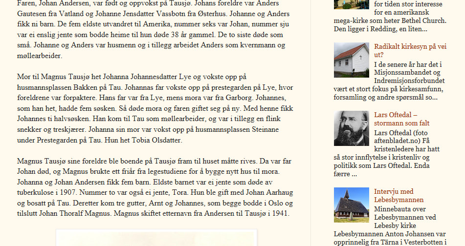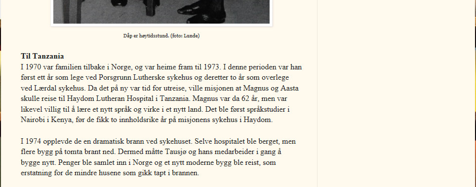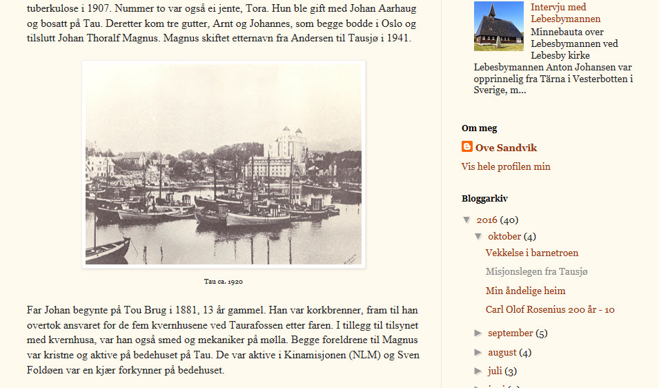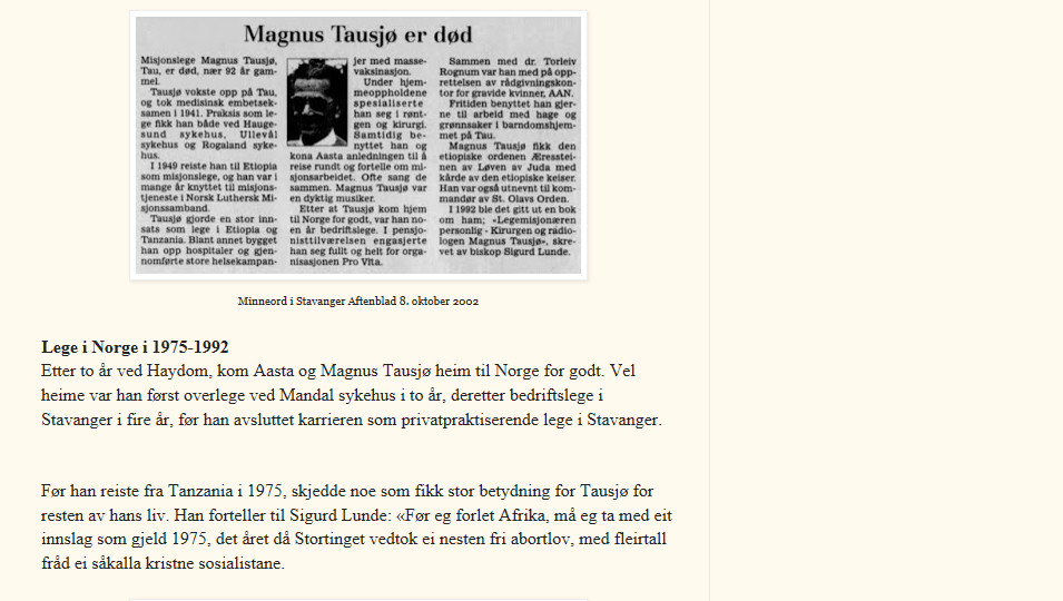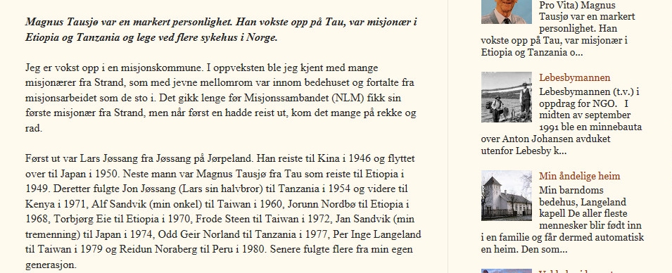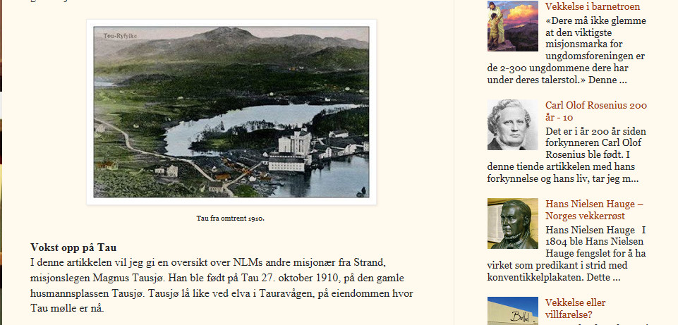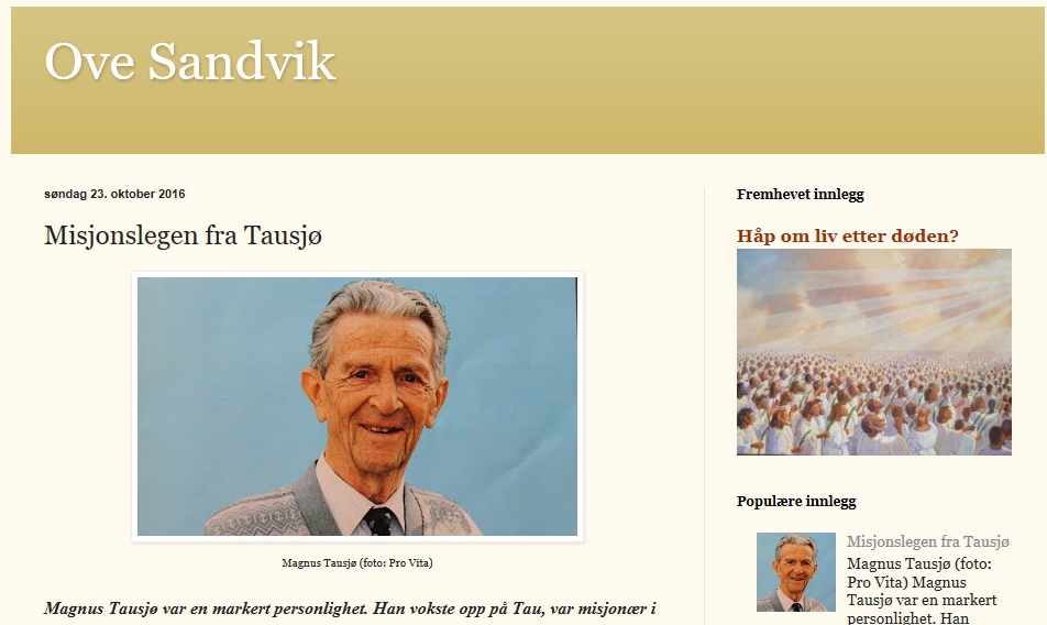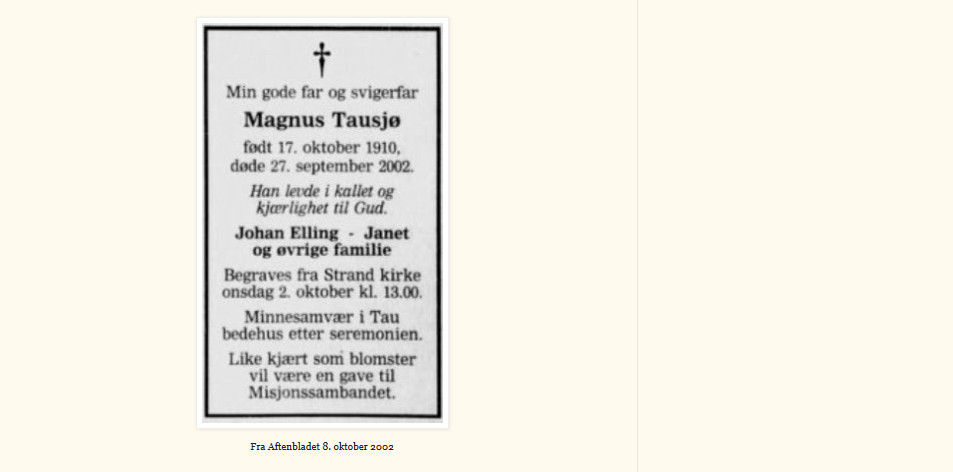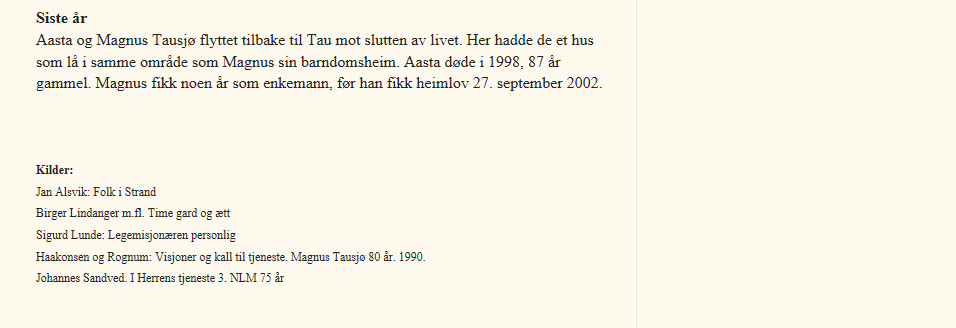 Misjonslegen Magnus Tausjø (1910-2002) var født på Tau i Strand.