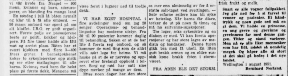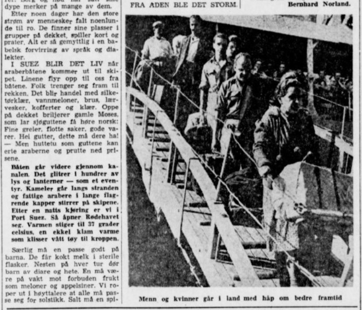 Artikkel i Aftenbladet i 1951. Han var ombord i M/S Goya med flyktninger fra Nepal til