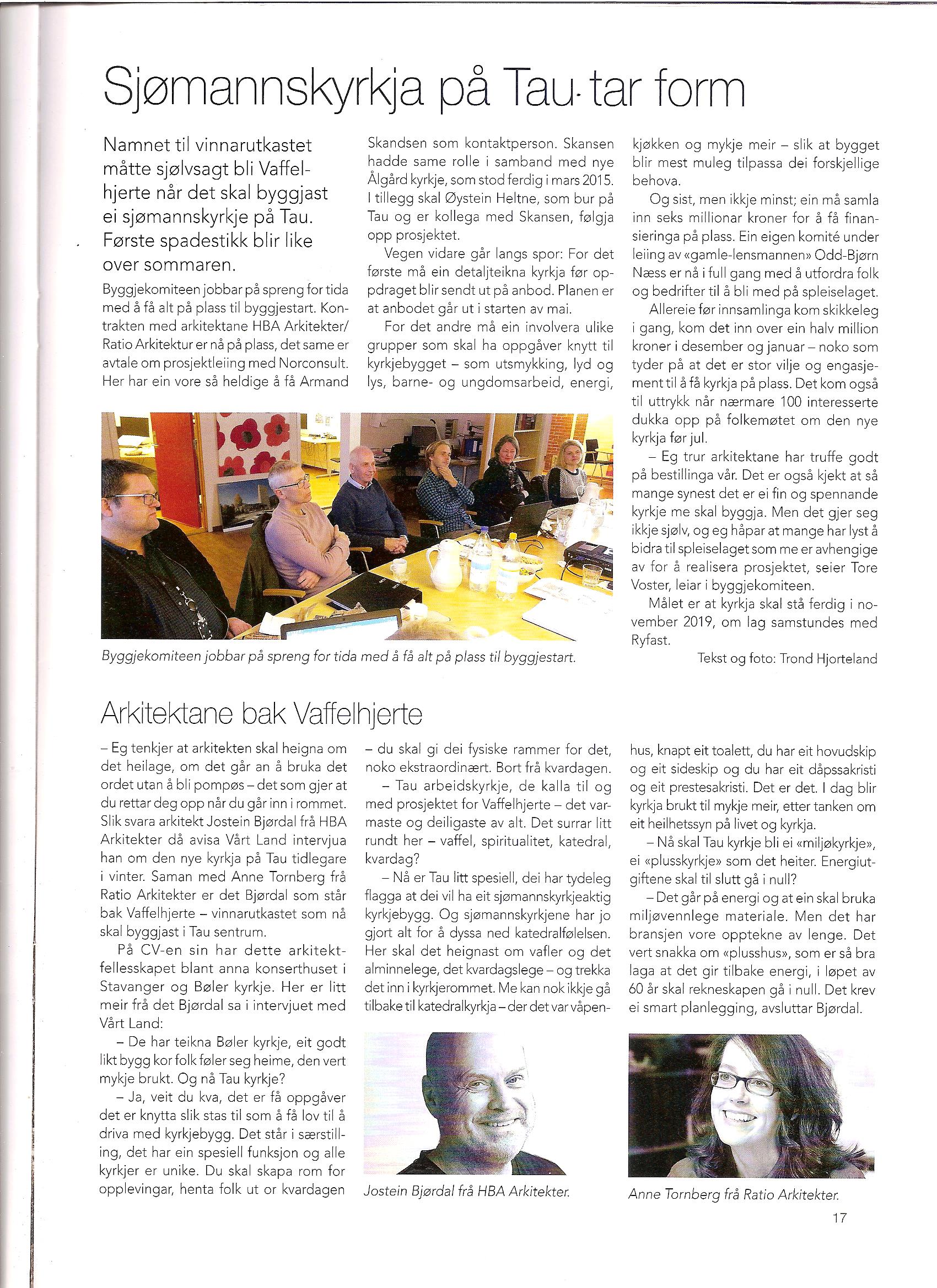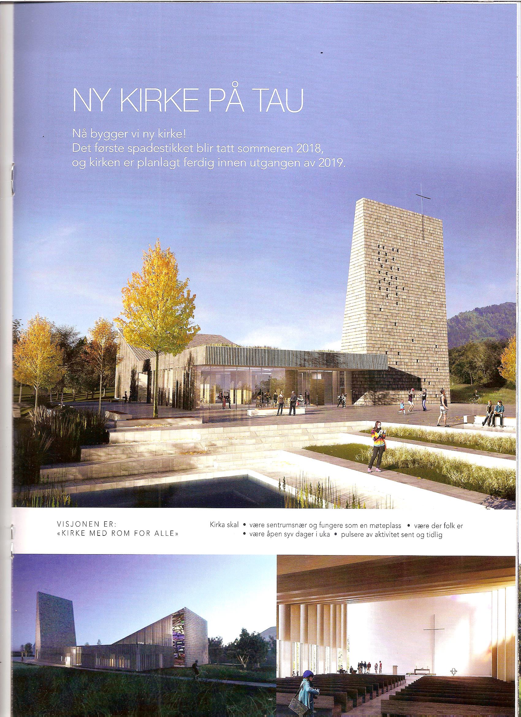 Bygging av ny kirke på Tau starer 2018 og skal være ferdig innen 2019.