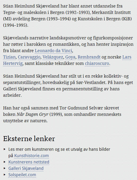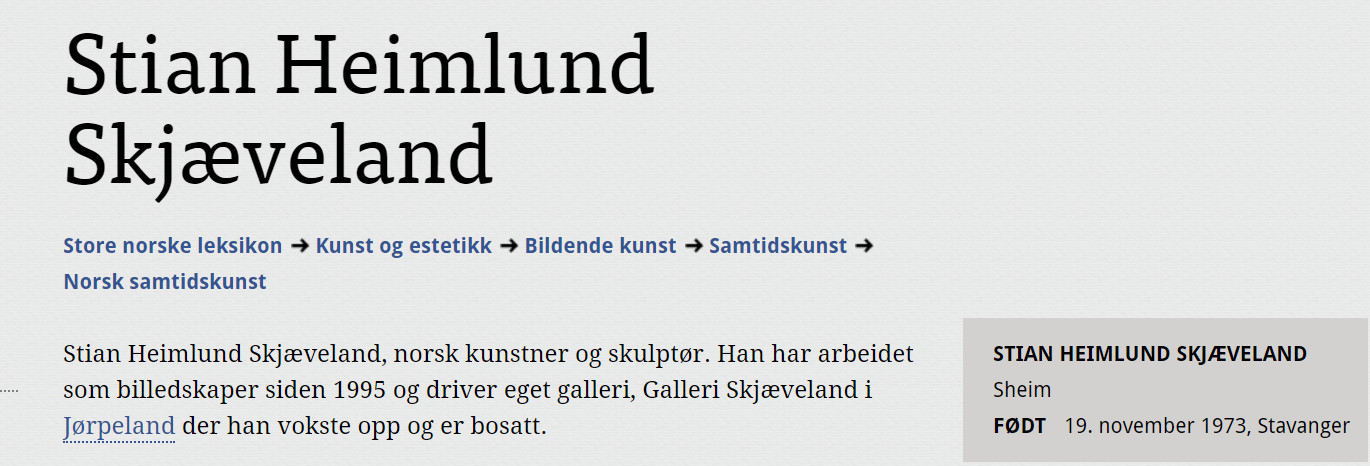 Store Norske Leksikon har omtale av Strand kommunes profilerte kunstner.