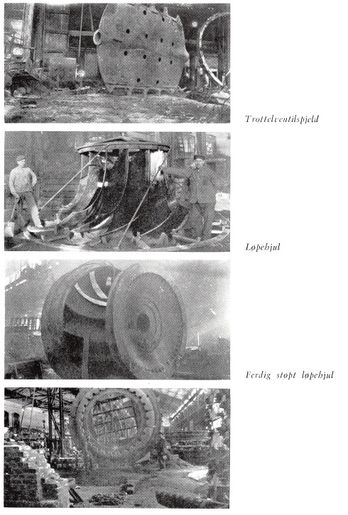 Men så kommer 1946. Da får vi oppleve den største revolusjon. Den pågikk i flere år. Igjen blir pusseriet forlenget med 30 m, men støperiet får 20 m, så det blir ikke mere enn 10 m lenger, men i bredde blir det godt utnyttet på begge sider med støpte gulv og plass til sveiseverksted, meiselbenk og Wheelabrator på den ene siden og sliperom for manganslipere, dreiebenk for store mangankonuser, 2 glødeovner, brennerom for brenning av manganløp og syrefast stål, som nå brennes med pulverskjærebrennere.