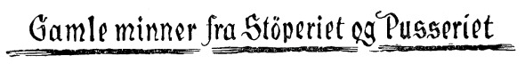 Pusseriet ble i den tid holdt for en dårlig arbeidsplass. Meget støv og tungt arbeid. Å nei, det var ikke alltid moro når store rør skulle pusses innvendig. Da måtte man krype inn i røret og ligge snart på magen og snart på ryggen, og det forekom nokså ofte i den tiden. Men vi var ikke bedre vant, så det gikk det også.