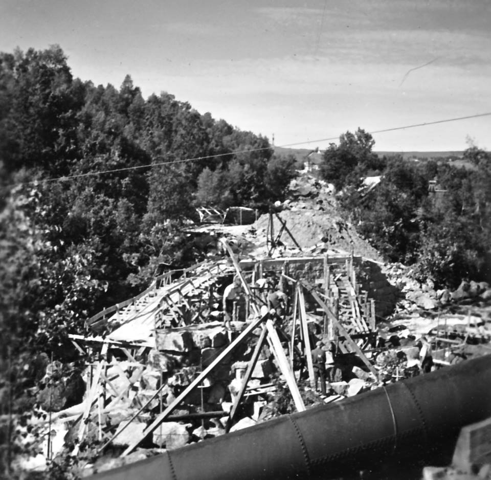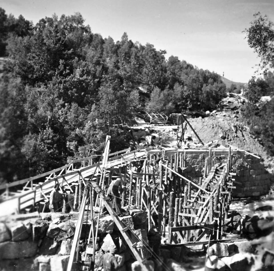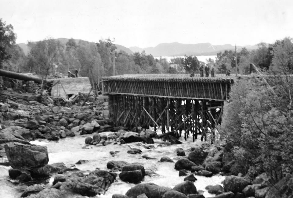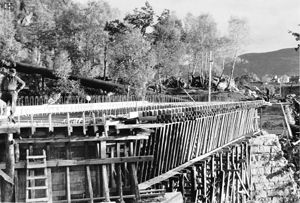 Bygging av Tunglandsbrua, brua sto fredig i 1953.