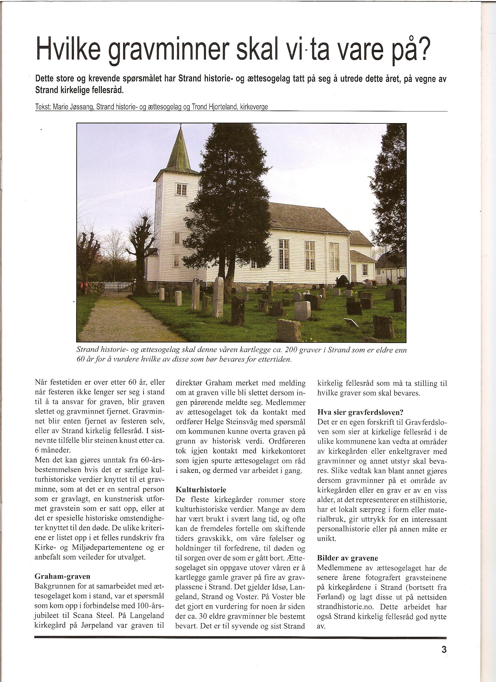 Historielaget tar del i arbeidet med å verne en del gravminner i kommunen.