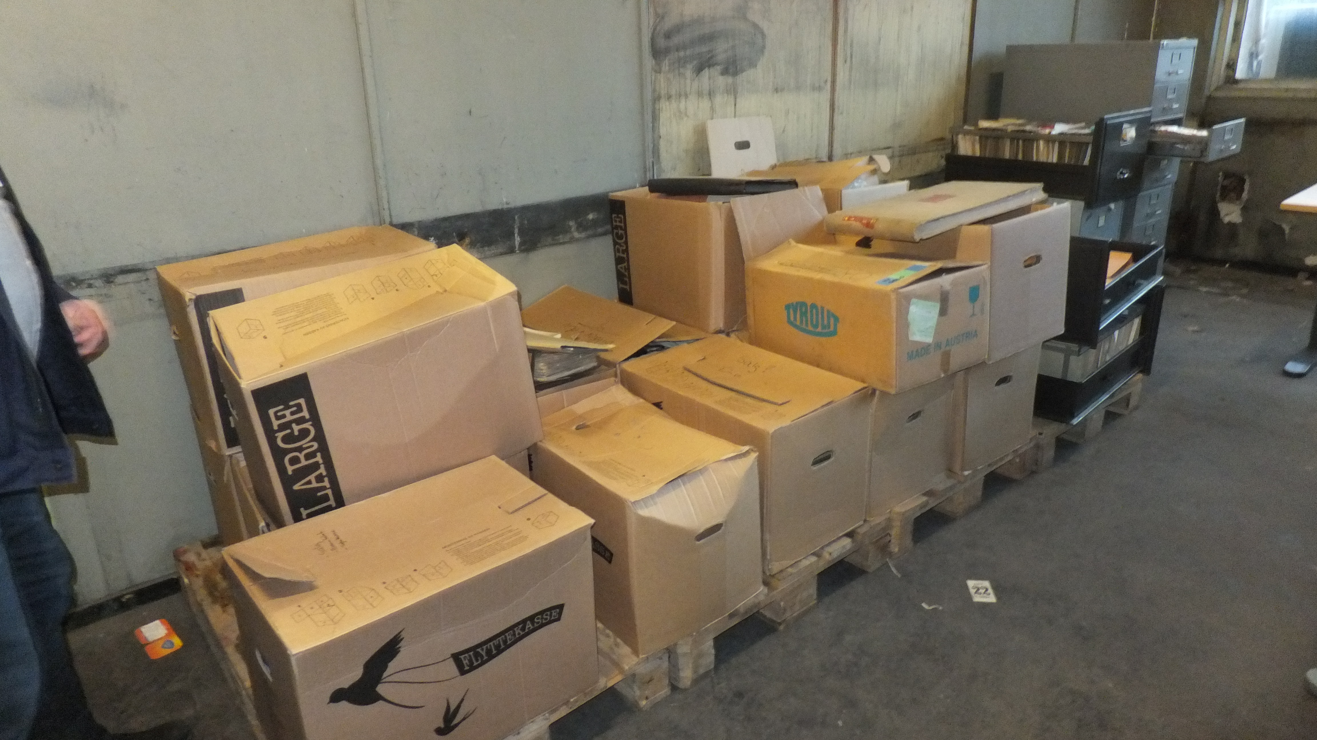 Her er en del av arkivet, og spenningen er stor : Hva kan det være i eskene?