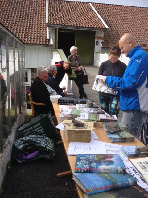 Historielaget hadde stand ute i solskinnet og solgte noen lokalhistoriske bøker. Spesielt var den gamle boka "Soga um Strand" fra 1938 populær. Musikkorps spilte og folk gikk rundt i parken og koste seg, Som vanlig var der salg av kaffe og mat i kafeen.