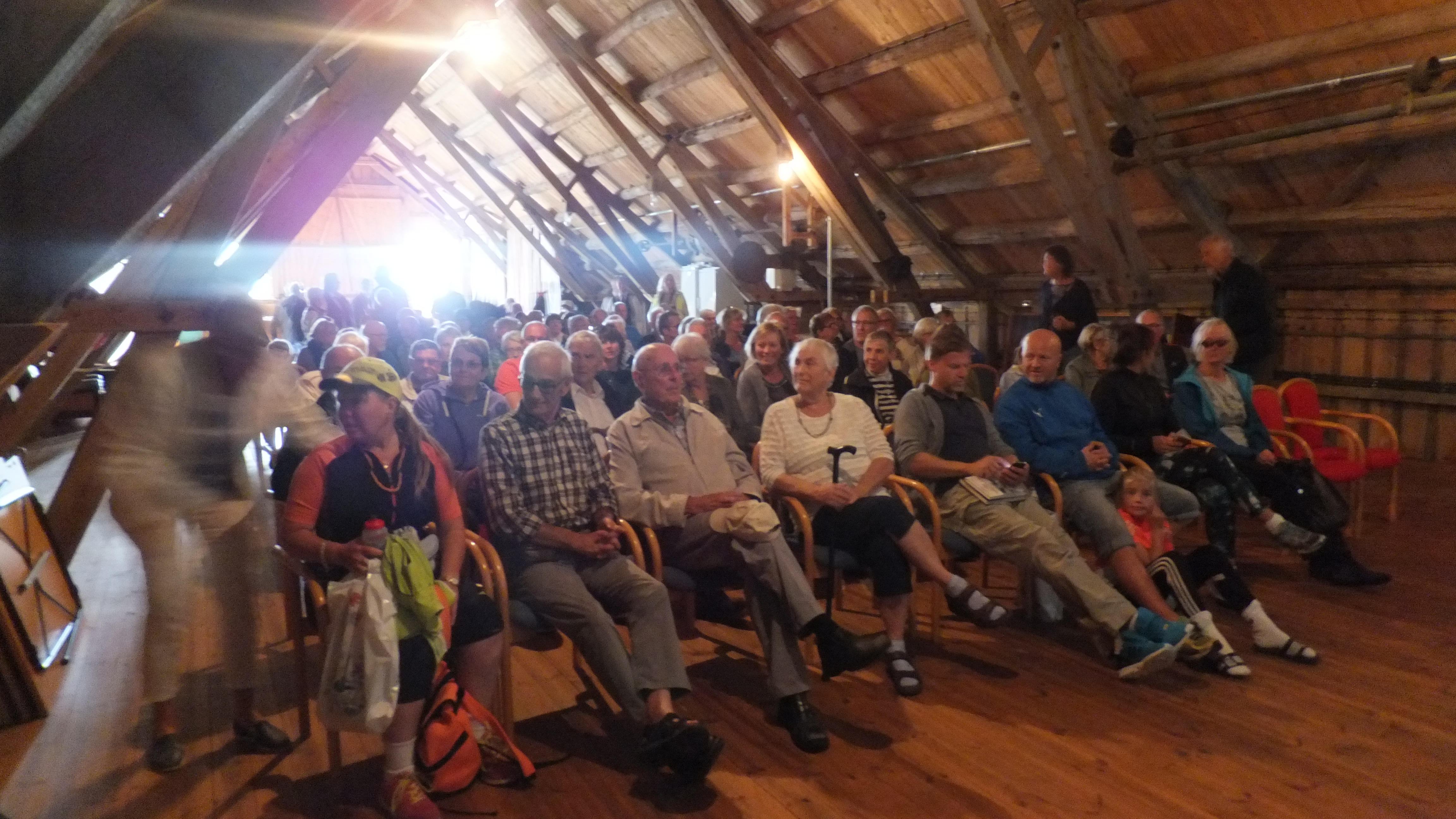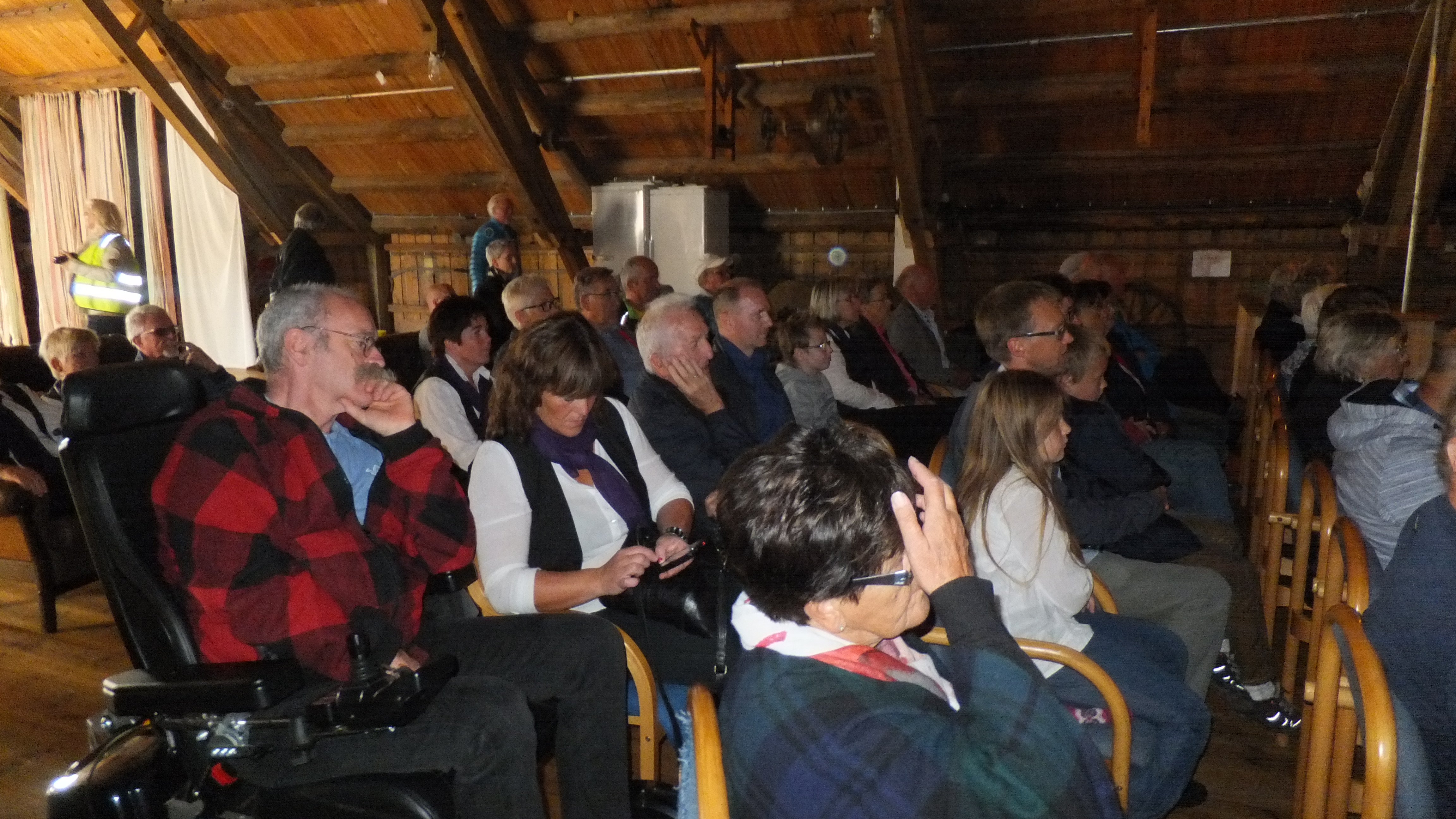 Det var rundt 100 personer som satte seg godt tilrette på låven og nøt gjensynet med mølledriften. Det var enkelte somkjente igjen de som var på filmen.