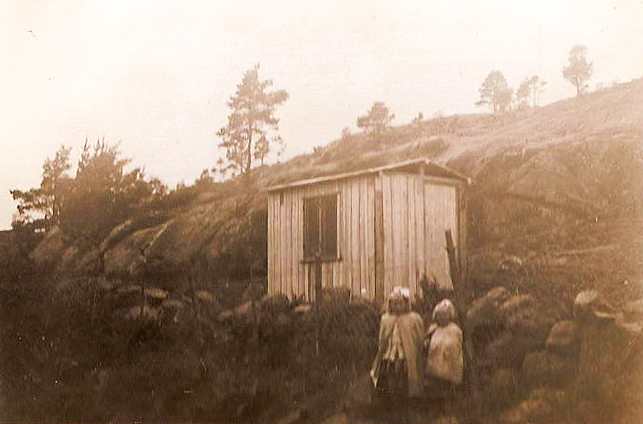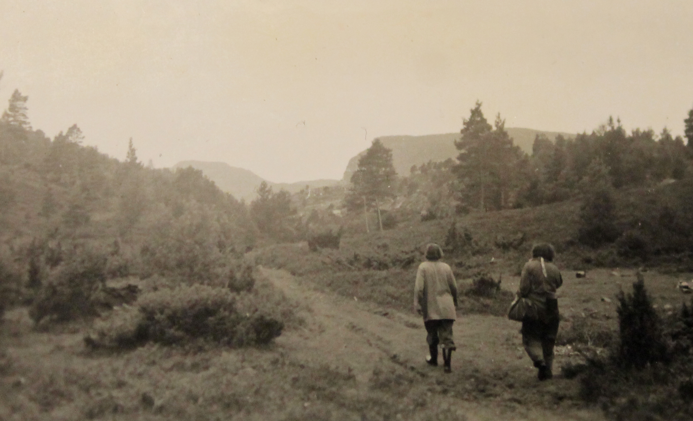 Men hver sommer «vokste» jeg opp på landet, eller i hytta vår som lå i Bjørheimsbygd. Vi var der i cirka 8 uker hvert år. Fra jeg var så liten at jeg ikke husker noe, ferierte vi på hytta hele sommeren. Min far og onkel bygde en midlertidig hytte som ble kalt «Skuret». Det var et rom på kanskje 8 kvadrat. Her sov og levde 7 personer tett sammen. Mine foreldre, min eldre søster, Else, meg, tante, onkel og mormor. Det var 3 køyer i høyden, en brei, en smal og den øverste var smalest. Mormor sov på en benk under vinduet. Det var og en liten kjøkkenbenk til primusen. På veggen hang et lite klaffebord som ble slått ned når vi skulle spise. Her bodde vi alle mens pappa og onkel bygde hytta. Det tok sin tid å bygge hytte når en bare hadde helger og sommerferiene til rådighet.
