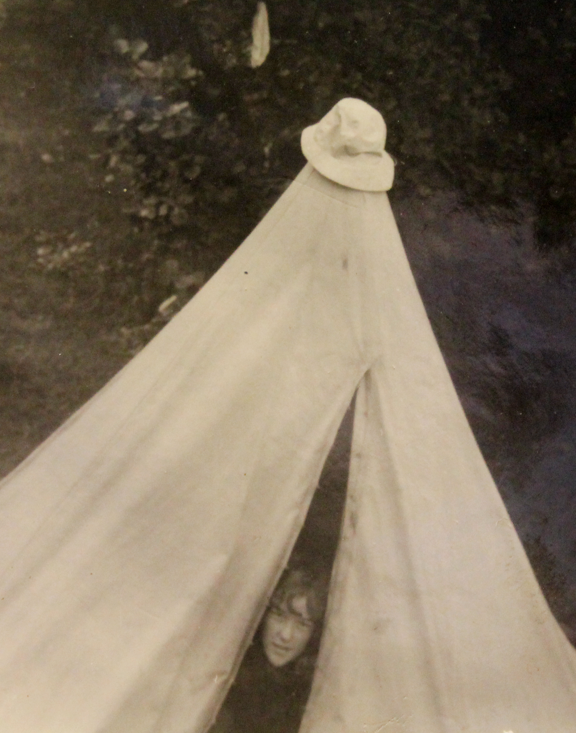Kari titter fram i teltåpningen. Det var ikke noe hustelt i de tider.