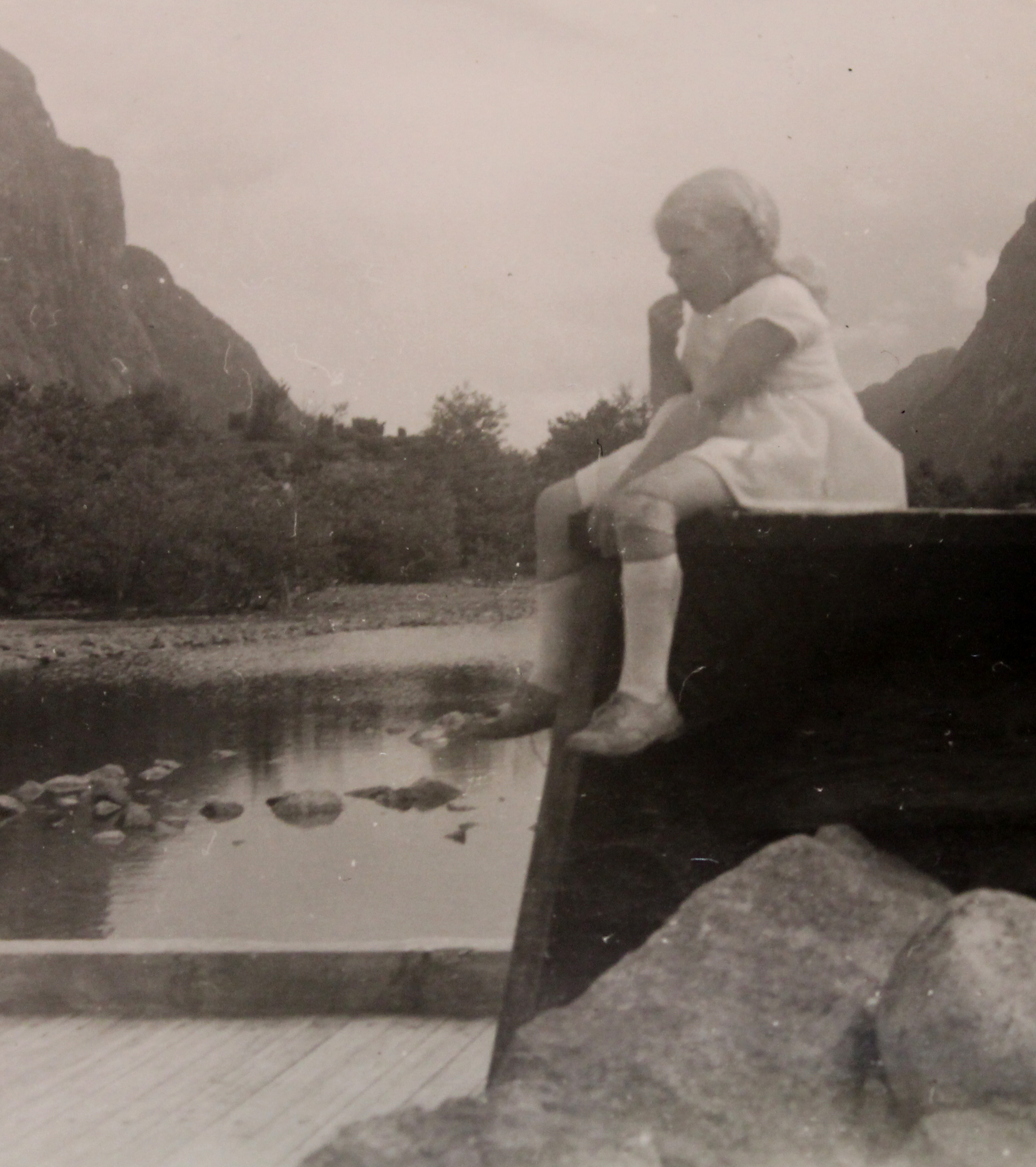 «Bleiånå» rant rett nedfor hytta. Det er min barndoms elv. Vi lekte i en liten kulp som av og til var så dyp at vi kunne ta noen svømmetak, vi vasset over elva enkelte plasser. Den var full av glatt stein som isbreen hadde lagt igjen.