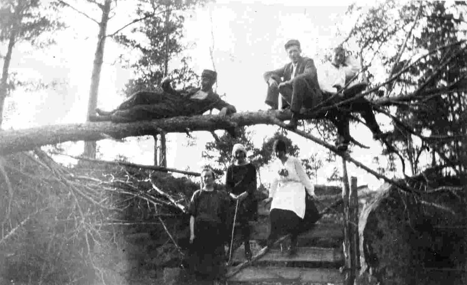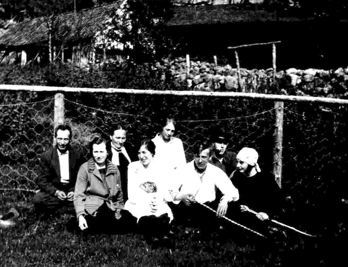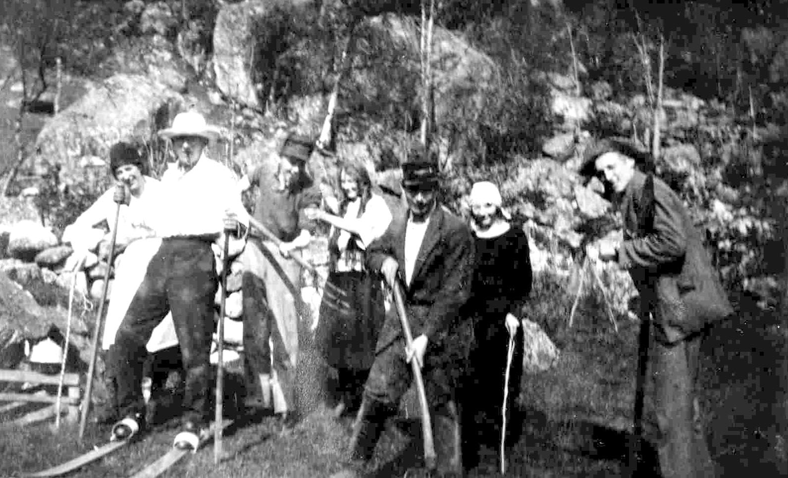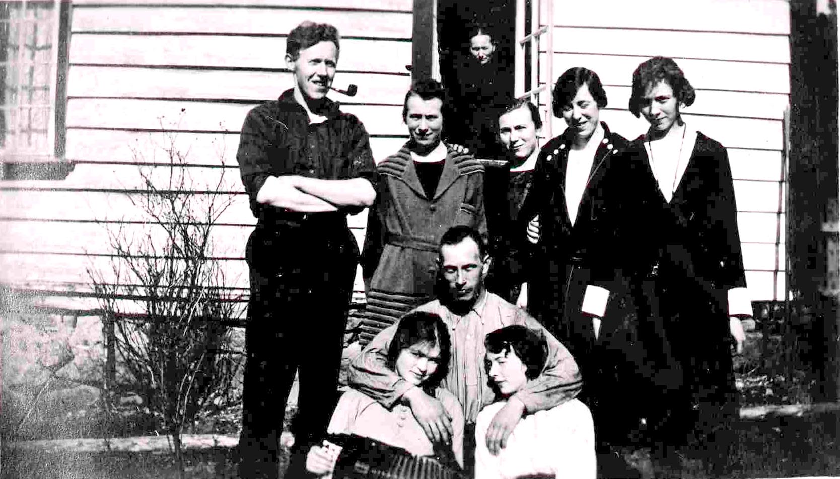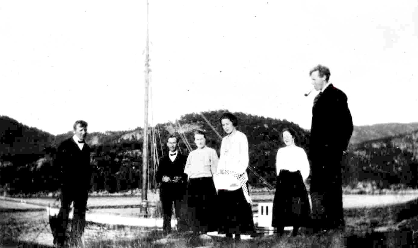 Erlandsdalen, Familien Danielsen foran huset. Fra venstre: Daniel, Anna, Karl Stousland, Alf, Ellen Stousland f. Danielsen, Helga, mor Elise Marie, og Helene.