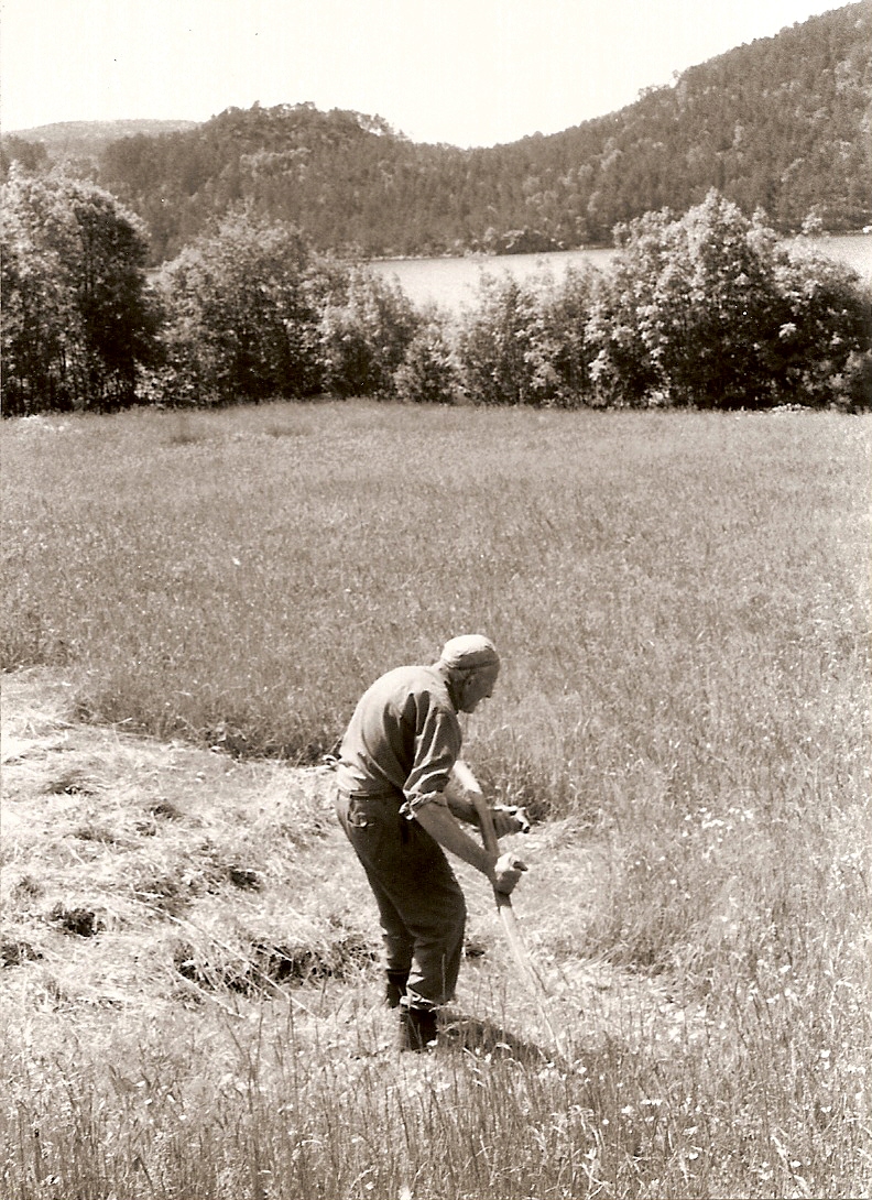 Alf Dreggevik slår høyet på gamle måten. 1988. ATK
