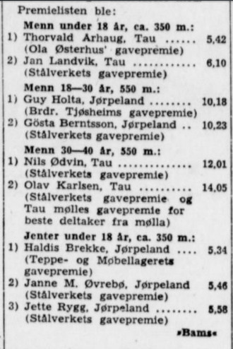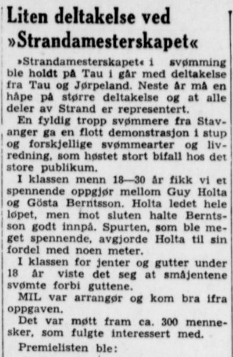 I 1950 arrangert MIL Strandamesterskap i svømming på Tau.