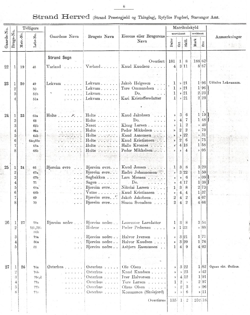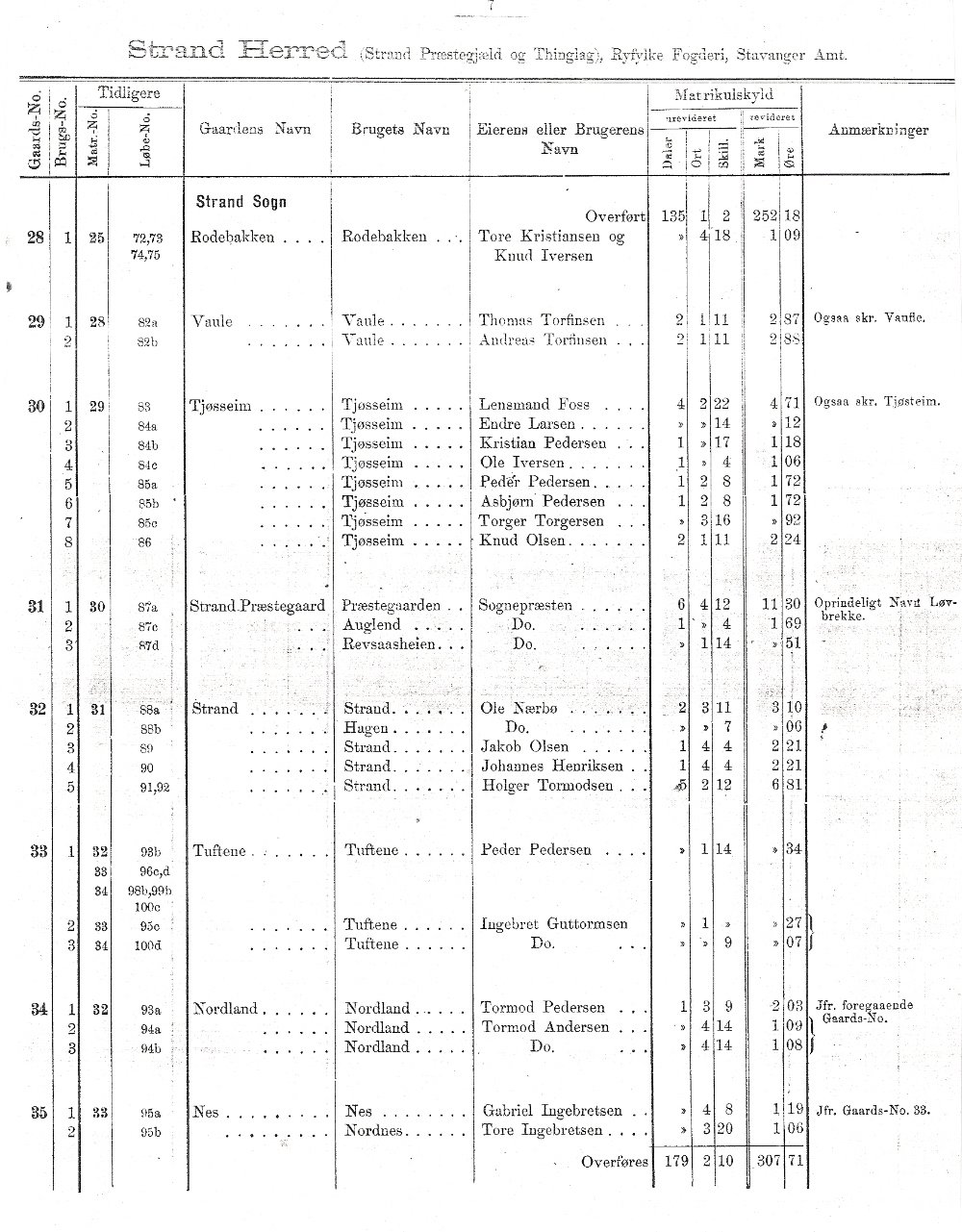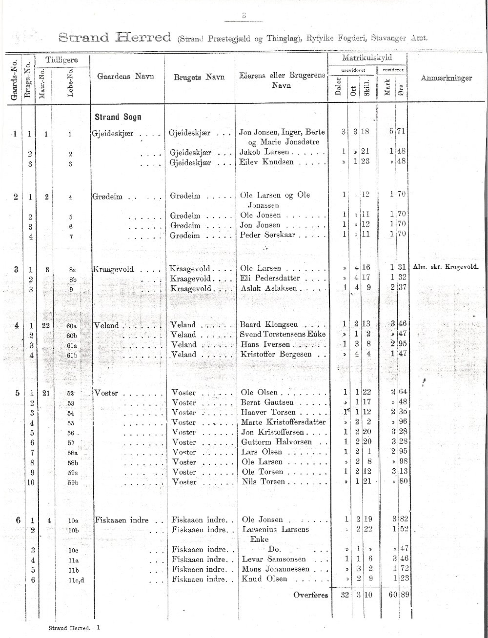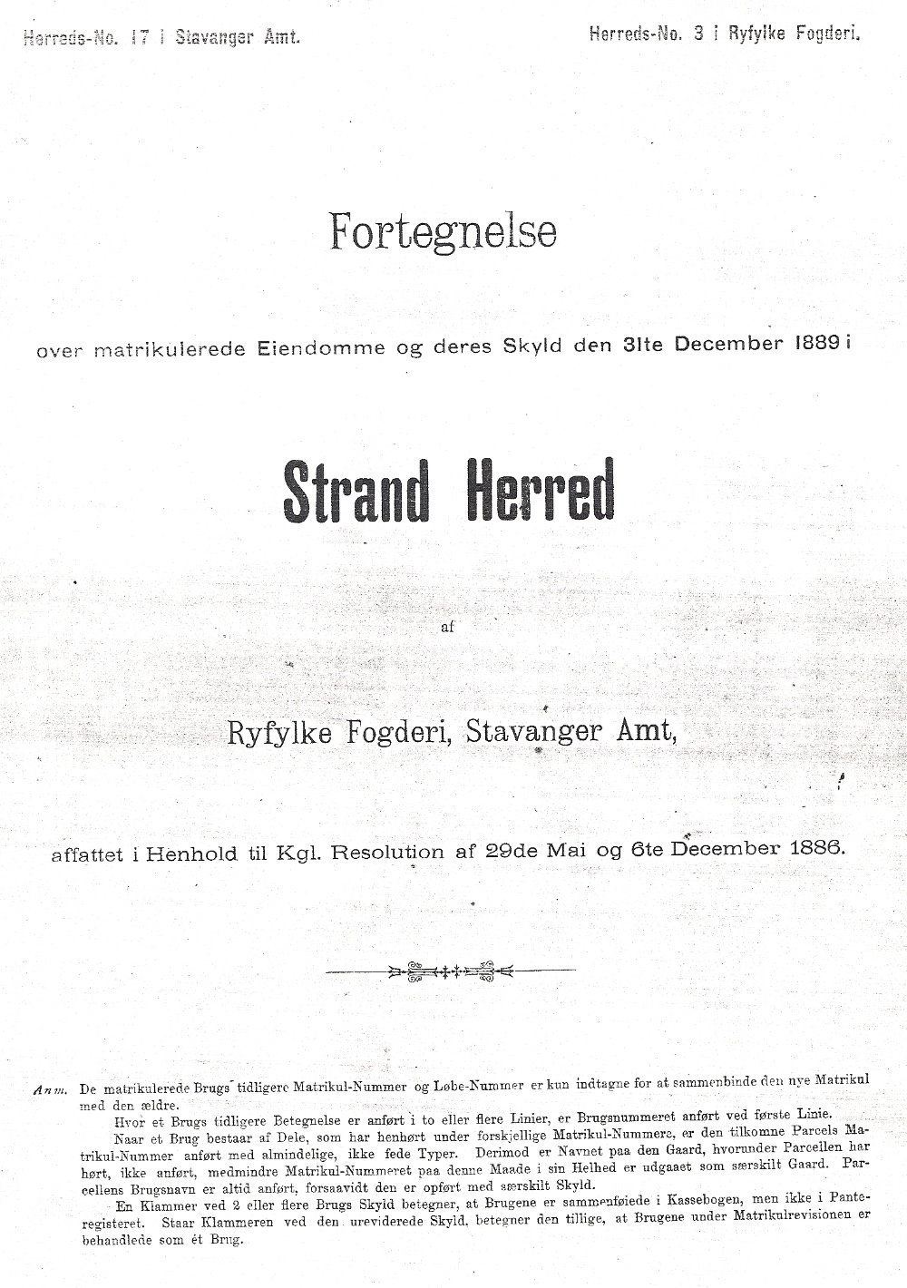 Matrikkel over Strand 1889