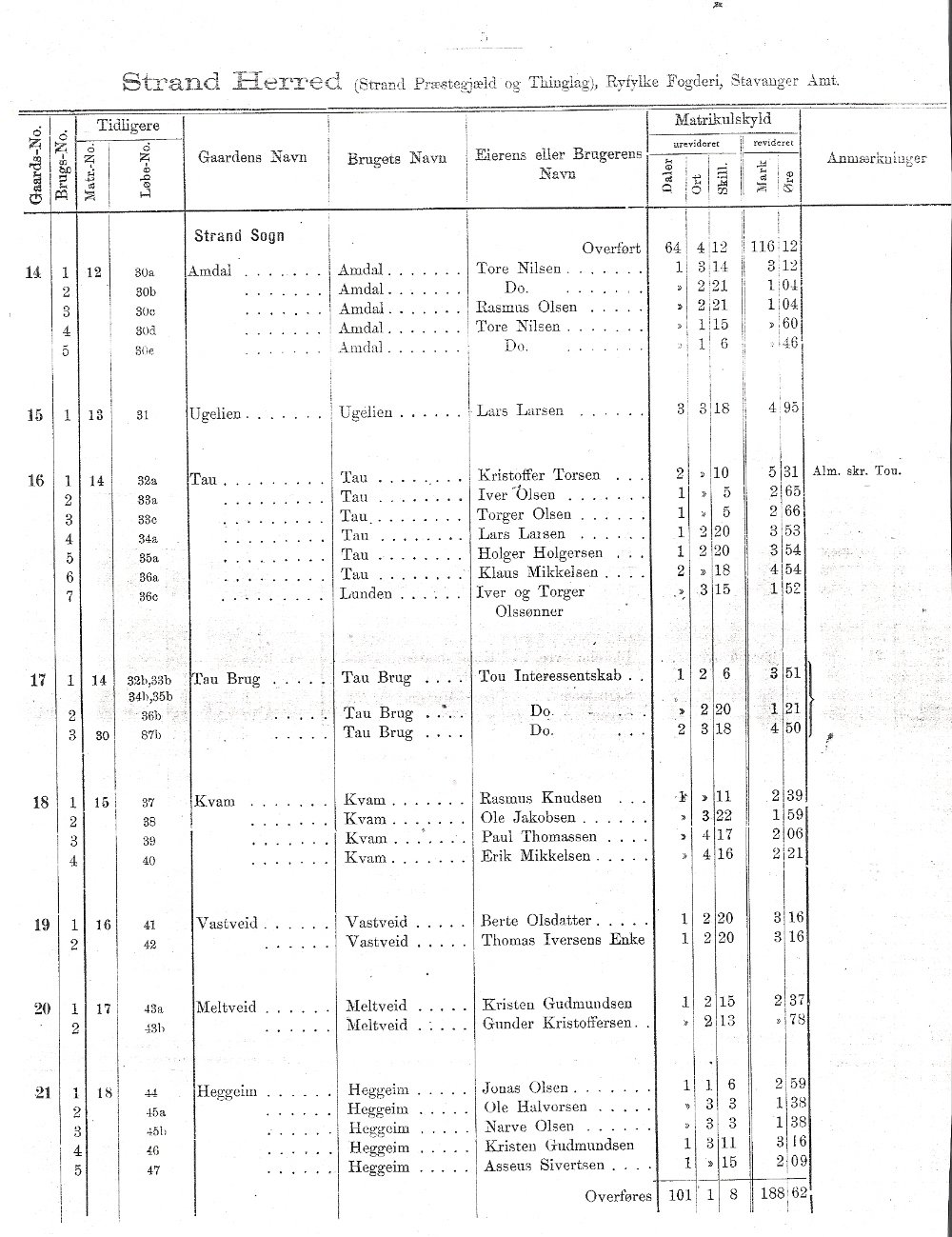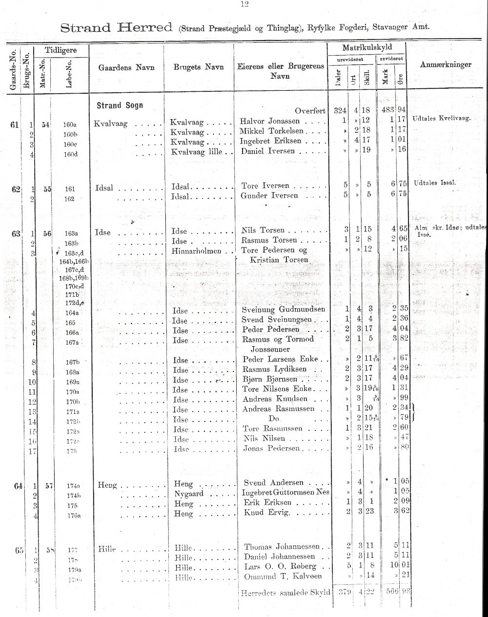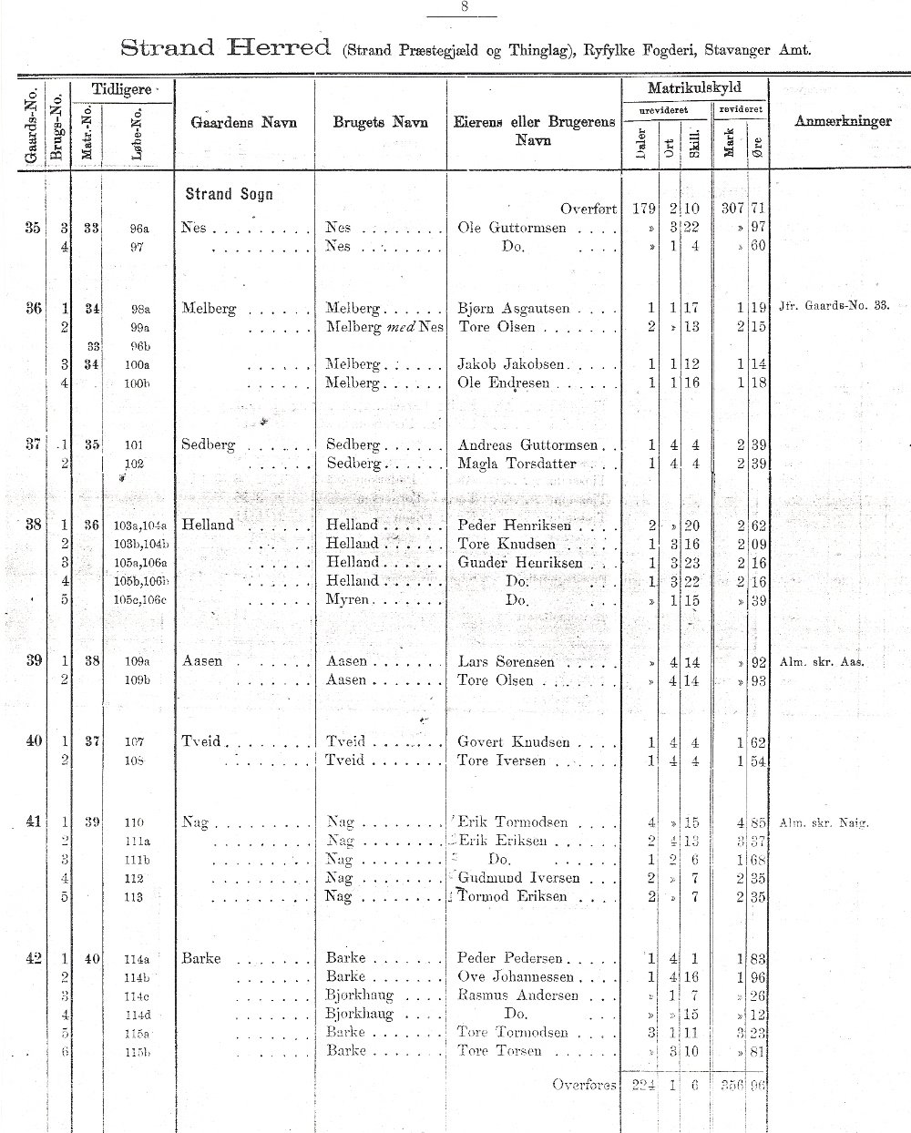 Matrikkel over Strand 1889
