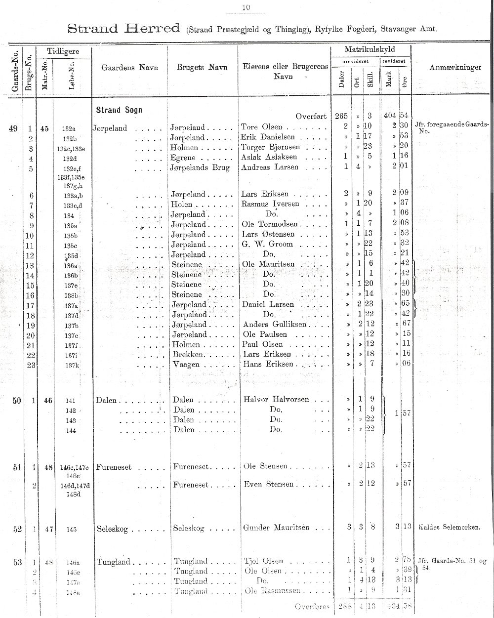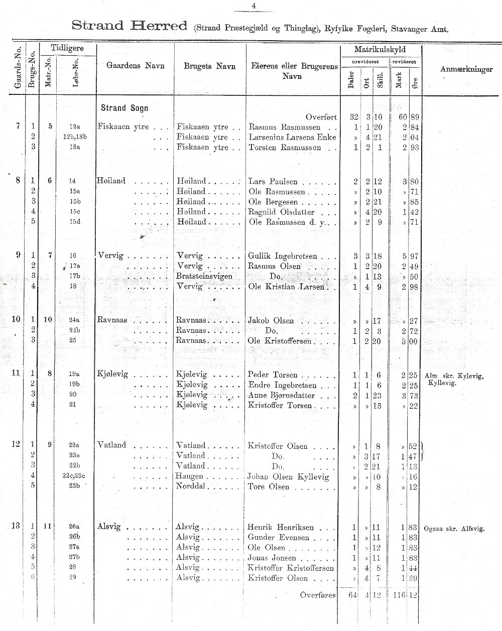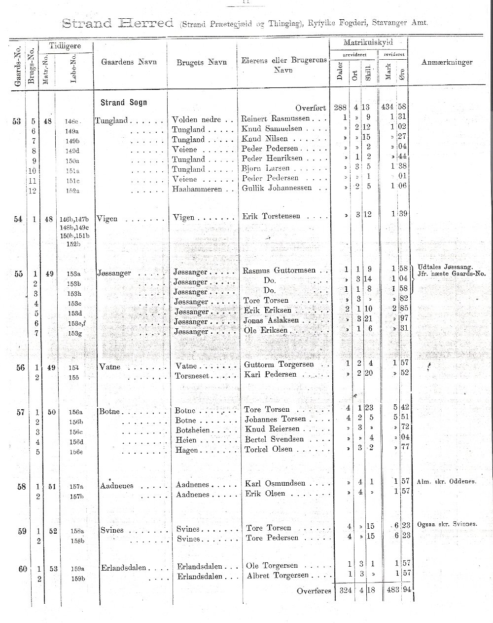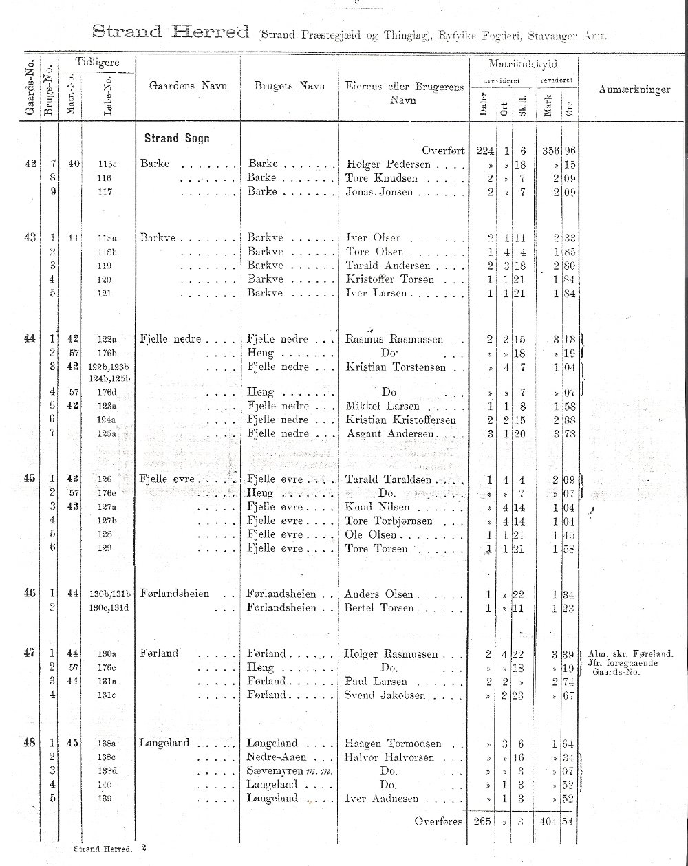 Matrikkel over Strand 1889