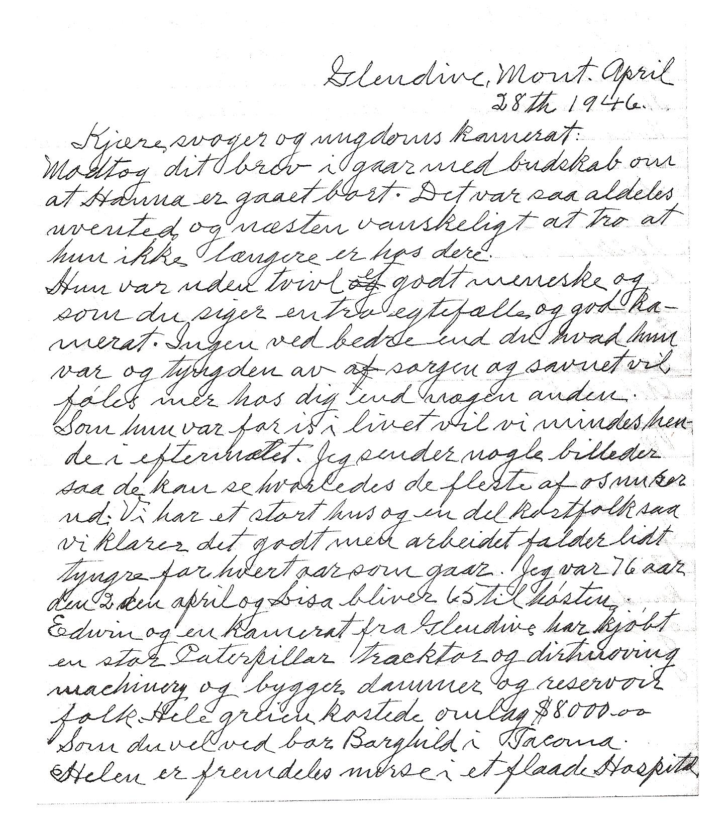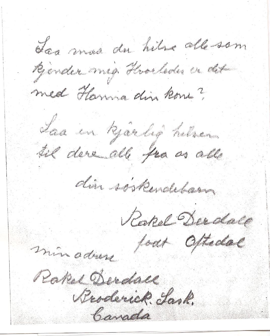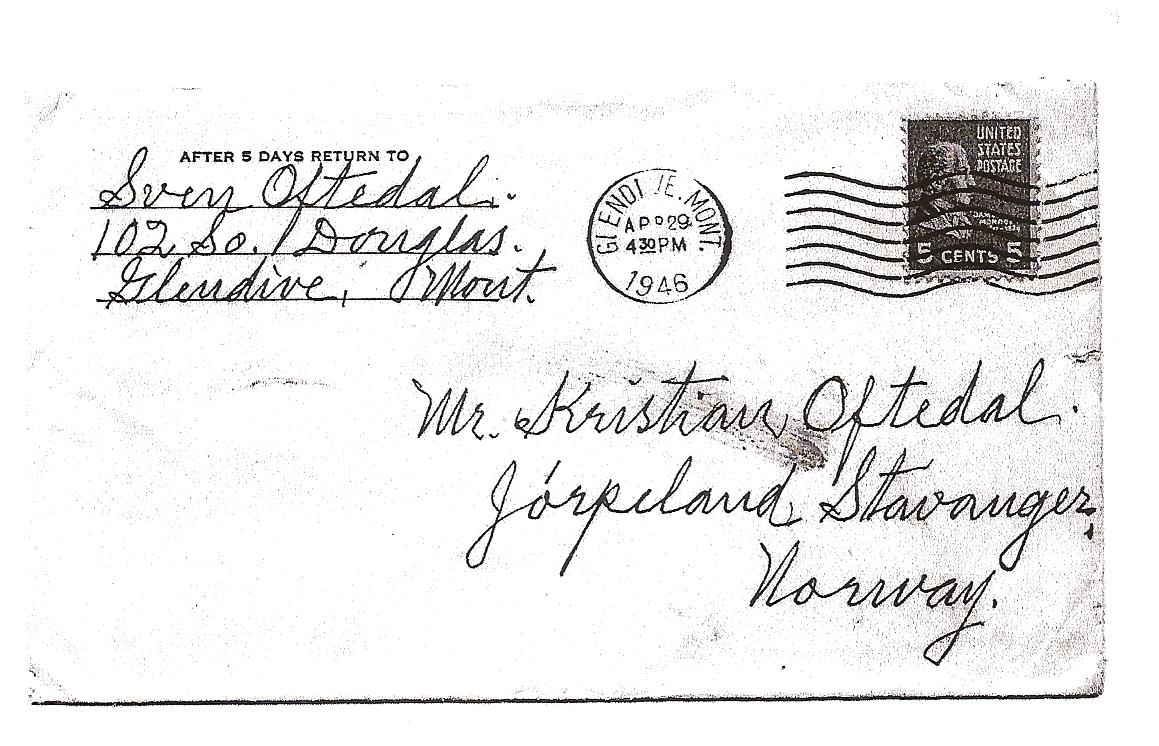 Personer som er nevnt. Christian Oftedal, Hanna Oftedahl, Kaare Oftedahl, Sven Oftedahl, Rakel Derdall, Edvin og Ellen, Sven og Lisa. Glendive, Montana USA