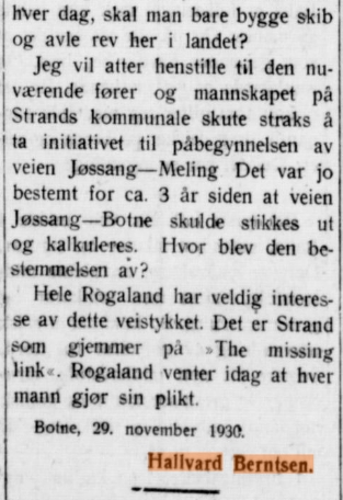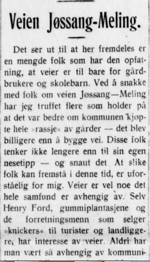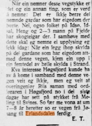 Både Hallvard Berntsen og E.T (Elias Tilset) hadde meninger om veiutbygging.